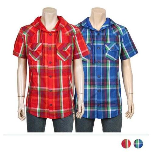 [셀럽하우스]브로스 ZXON4955 후드 체크 반팔 남방 셔츠