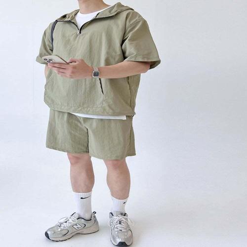 [셀럽하우스]남성 UEMF2075 3컬러 여름 후드 집업 반팔 아노락 반바지 셋업