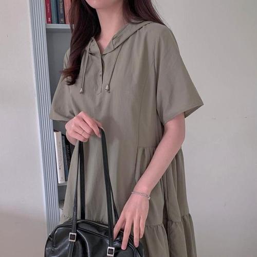 반팔후드원피스