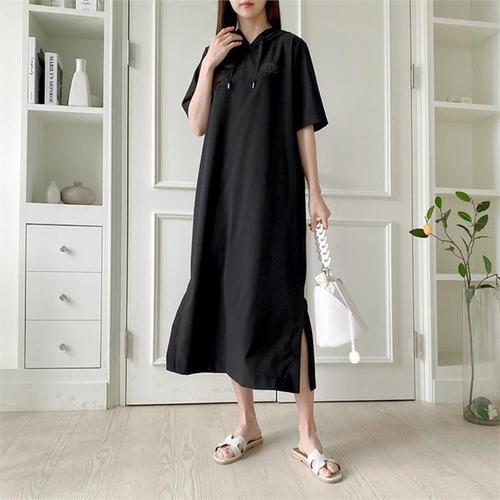 [오너클랜]인기상품 여름용 박시 후드 반팔 롱 원피스 여행 데일리룩 [WFLKZAM_260304]