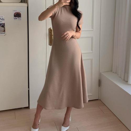 [다잇템][다잇템] 여자 반소매 미니멀리즘 롱 텐션 소프트핏 후레아 원피스_22460008_588872