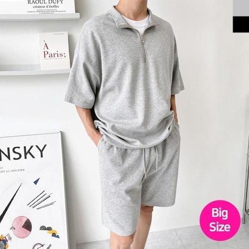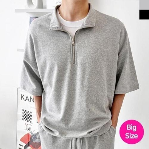 [엄지척]빅사이즈 오버핏 남자 데일리 반집업 반팔 맨투맨_20459223_667501