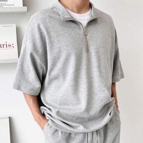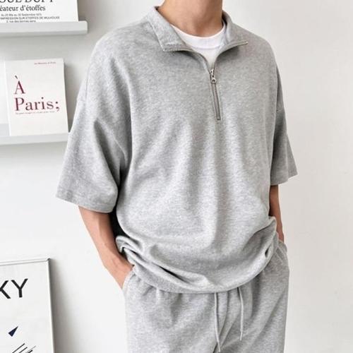 [셀러허브_여성트랜드패션]남성의류 반집업 데일리 남자 오버핏 맨투맨 반팔 반집업반팔 빅사이즈