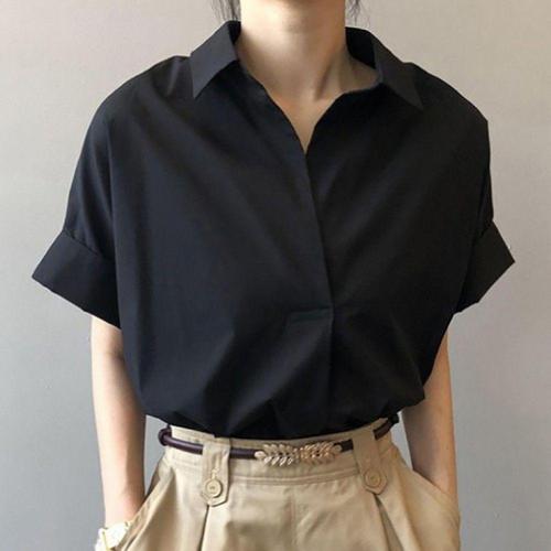[셀럽하우스]여성 IZJO5163 오픈카라 루즈핏 무지 반팔 우아 셔츠블라우스