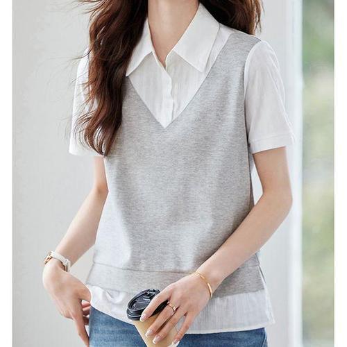 [패션시그널]베스트레이어드 반팔셔츠블라우스 576268