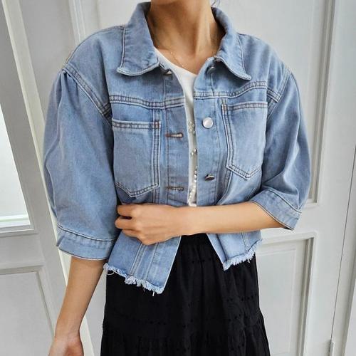 [다잇템]여자 반팔청자켓 아방 퍼프 빈티지 여름 자켓