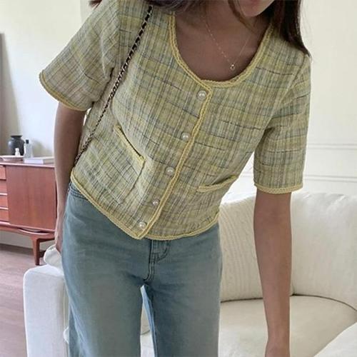 유아몽드 / 여성 반팔 트위드자켓 숏자켓 체크 하객룩 봄 여름 재