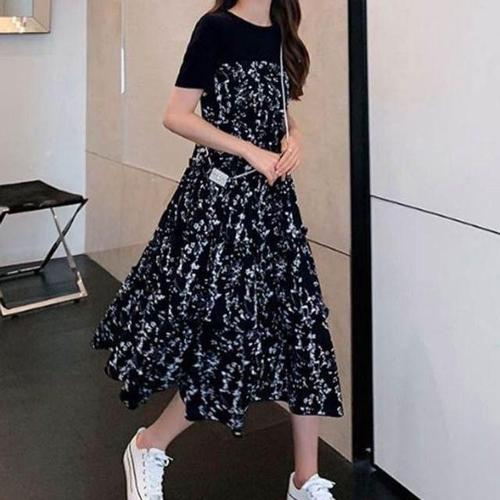 플라워 꽃무늬 레이어드 롱 여자 반팔 패턴 원피스 WFLOZQH