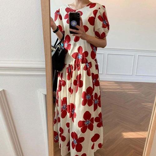 [오너클랜]인기상품 롱 원피스 반팔 여름 가을 루즈핏 플라워 드레스 [WFLHZB7_260227]