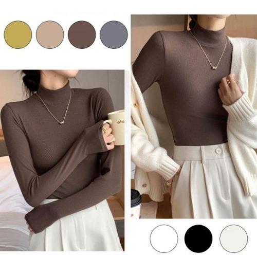 [에이치플러스몰]여자니트 티셔츠 겨울 골지니트 쫀쫀 여성목폴라 반목