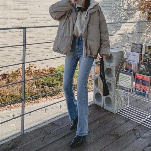 [다잇템]여자 라이트블루 롱다리 부츠컷 워싱 반하이 데님팬츠 (7937583A)