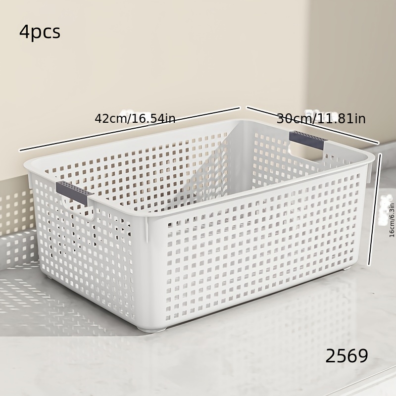 TEMU 4개 세트 플라스틱 화이트 수납 바구니, 대용량 데스크탑 정리함, 욕실 및 주방용 보관 바구니, 할로윈 & 크리스마스 선물, 선반 바구니