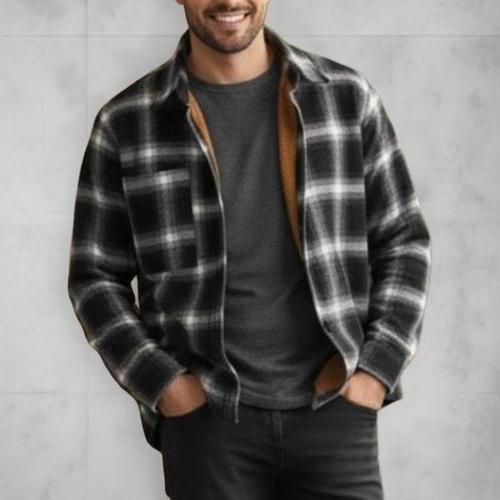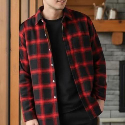 [옷자락]남성 클래식 배색 체크 발열 기모 셔츠