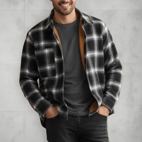 [옷자락] 남성 클래식 배색 체크 발열 기모 셔츠