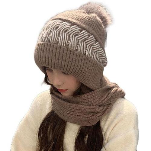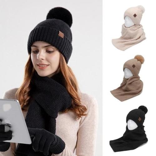 [BZJL8VMV_4C]여자 방울 스타일 니트 모자 목도리 비니