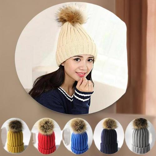 여성 겨울 따뜻한 니트 방울털 마스크 비니 WFHIOEI