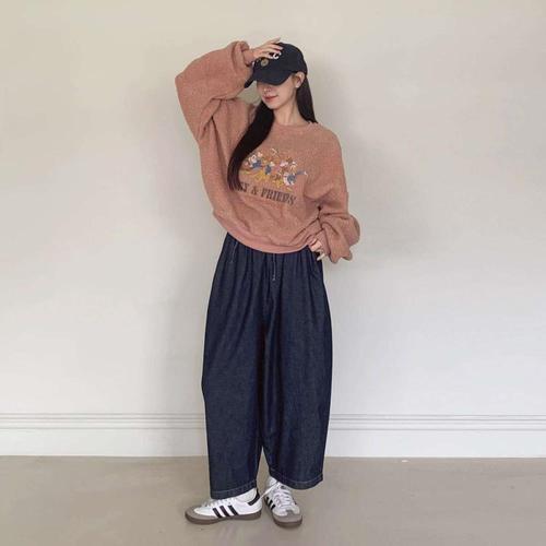 [핑크시슬리] 키별로 밍크기모 히든밴딩 와이드 배기 데님
