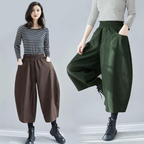 [오너클랜]인기상품 여성 가을용 코듀로이 배기핏 8부 와이드 골덴 팬츠 슬랙스 [WFLKZ7K_260304]
