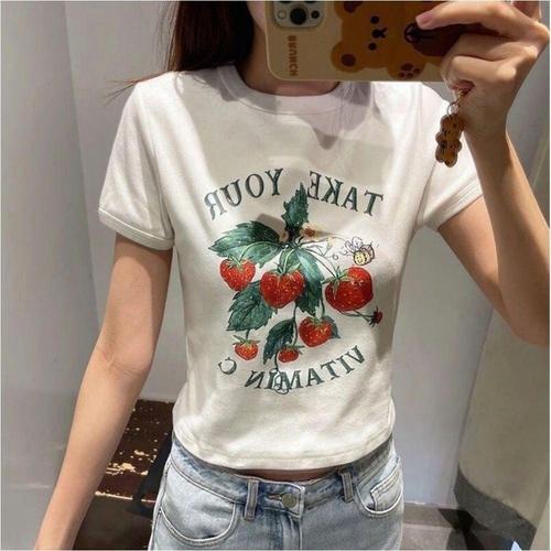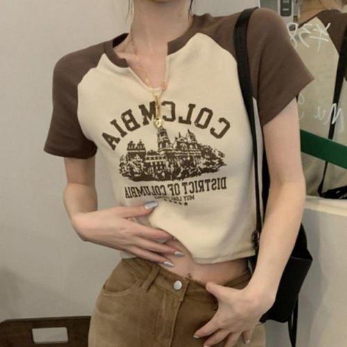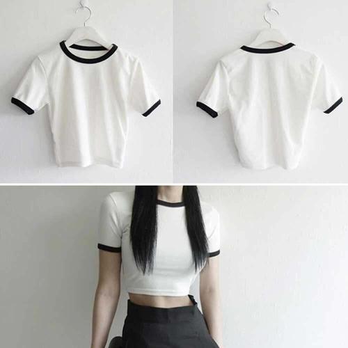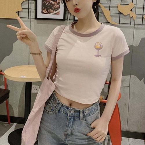 반팔 크롭티 여성 배꼽티 Y2K 여름 배색 스타일