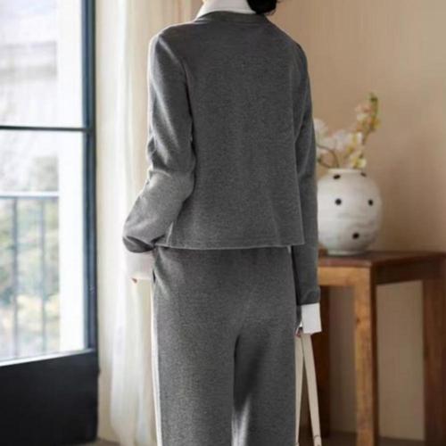 [보니스팍스]배색 라인 슬릿 라운드 니트 앤 와이드 팬츠 세트 (XQ1ST003M0)