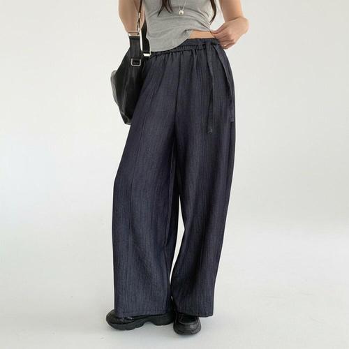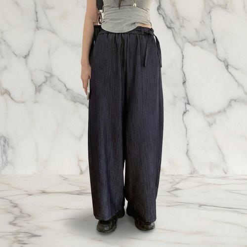 린넨진청쿨데님 여름 하우룩 밴딩 린넨 마 쿨소재 데님 와이드 통바지