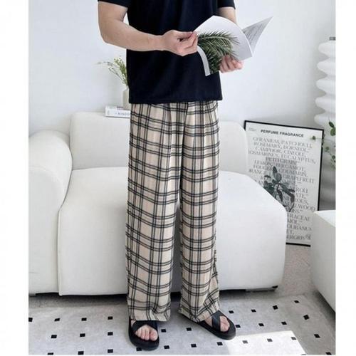 밴딩 남자 바지 와이드 팬츠 쿨소재 여름 체크 (46V0k)