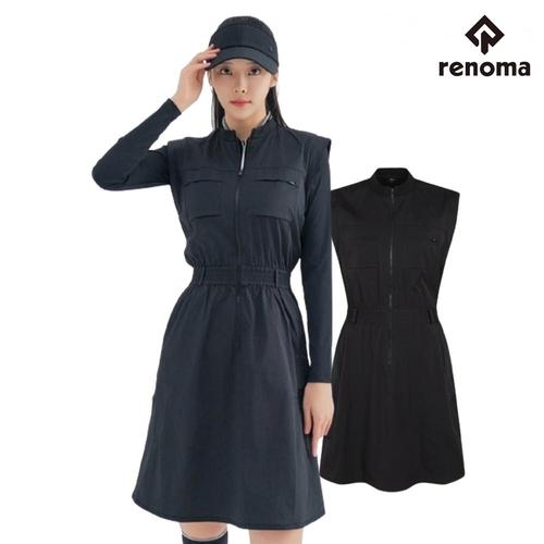레노마골프 여성 골프 봄 반집업 포켓 허리 밴딩 슬리브리스 원피스 N 5377