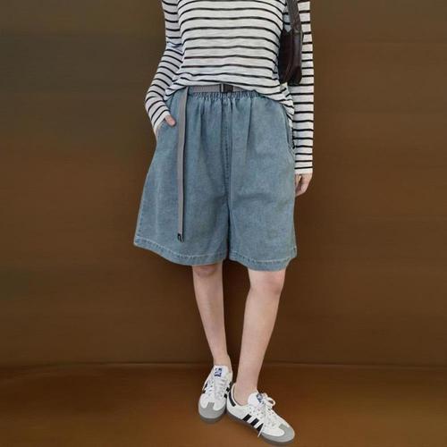 |CHP8CCA|여성 코튼 와이드핏 데님 밴딩 반바지 버클 벨트