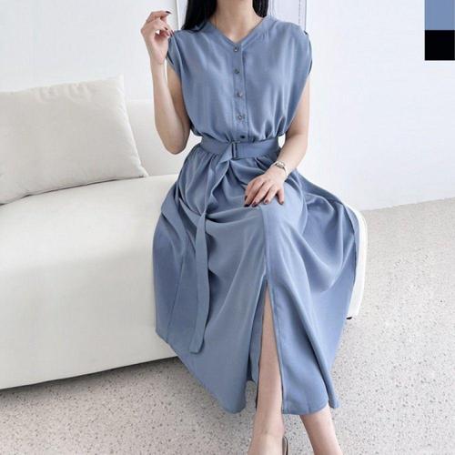 [오너클랜]인기상품 셔링 밴딩 롱 원피스 여성 벨트 여름 드레스 [WFLL9D6_260304]