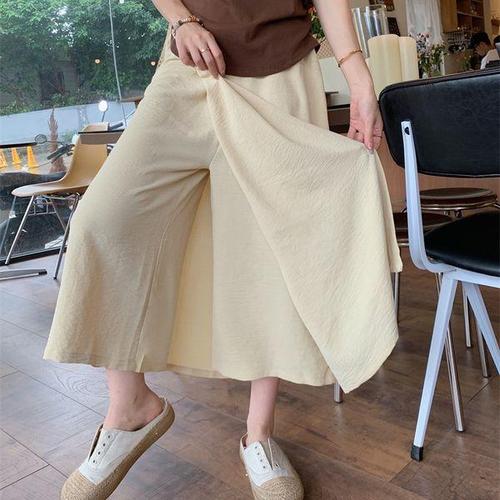 [셀러허브_여성트랜드패션]통바지 X 허리밴딩 린넨 치마바지 팬츠 와이드 풀밴딩