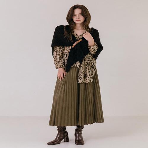 [막스까르띠지오]벨트 디테일 스웨이드 플리츠 스커트