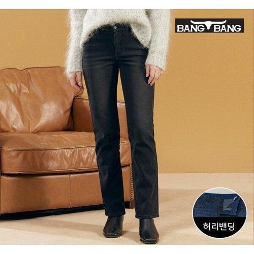 [뱅뱅][뱅뱅] 여성 더블기모 세미 부츠컷 스판 데님 검정