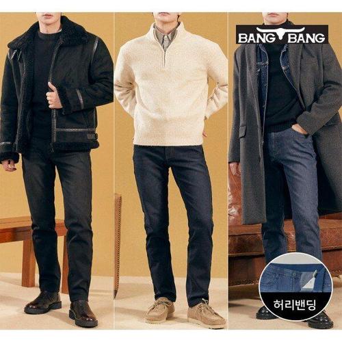 [뱅뱅][뱅뱅] 남성 라이크라 이중직 기모 데님 3종세트