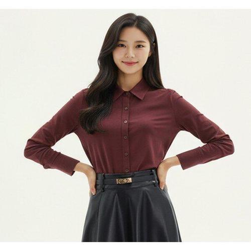 [다잇템]여자 버건디 다크 코튼셔츠 무지 데일리 셔츠