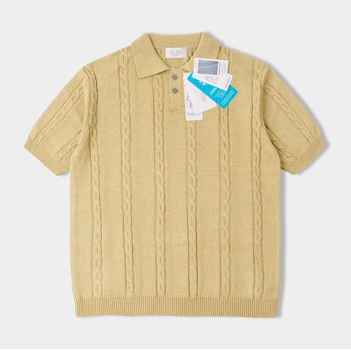[리빌모아]남자 로웬 케이블 카라 반팔 니트티 AT-KNH-Q004-베이지