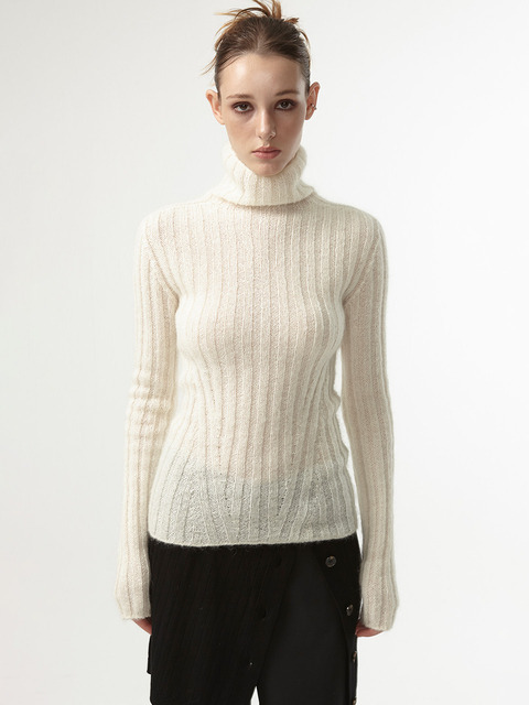 [이안 조] 홀가먼트 터틀넥 리브드 니트 (아이보리)