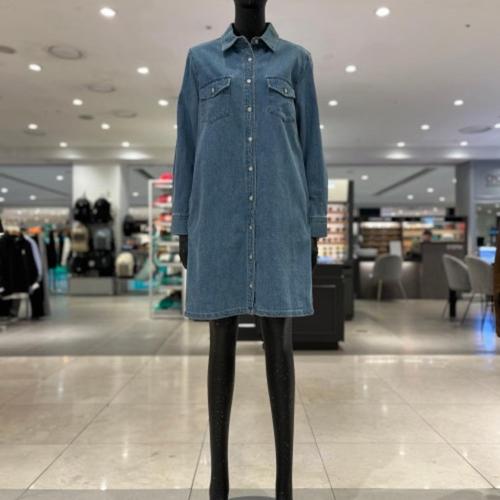 [버커루]여성 투포켓 셔츠형 M톤 데님 원피스-DG
