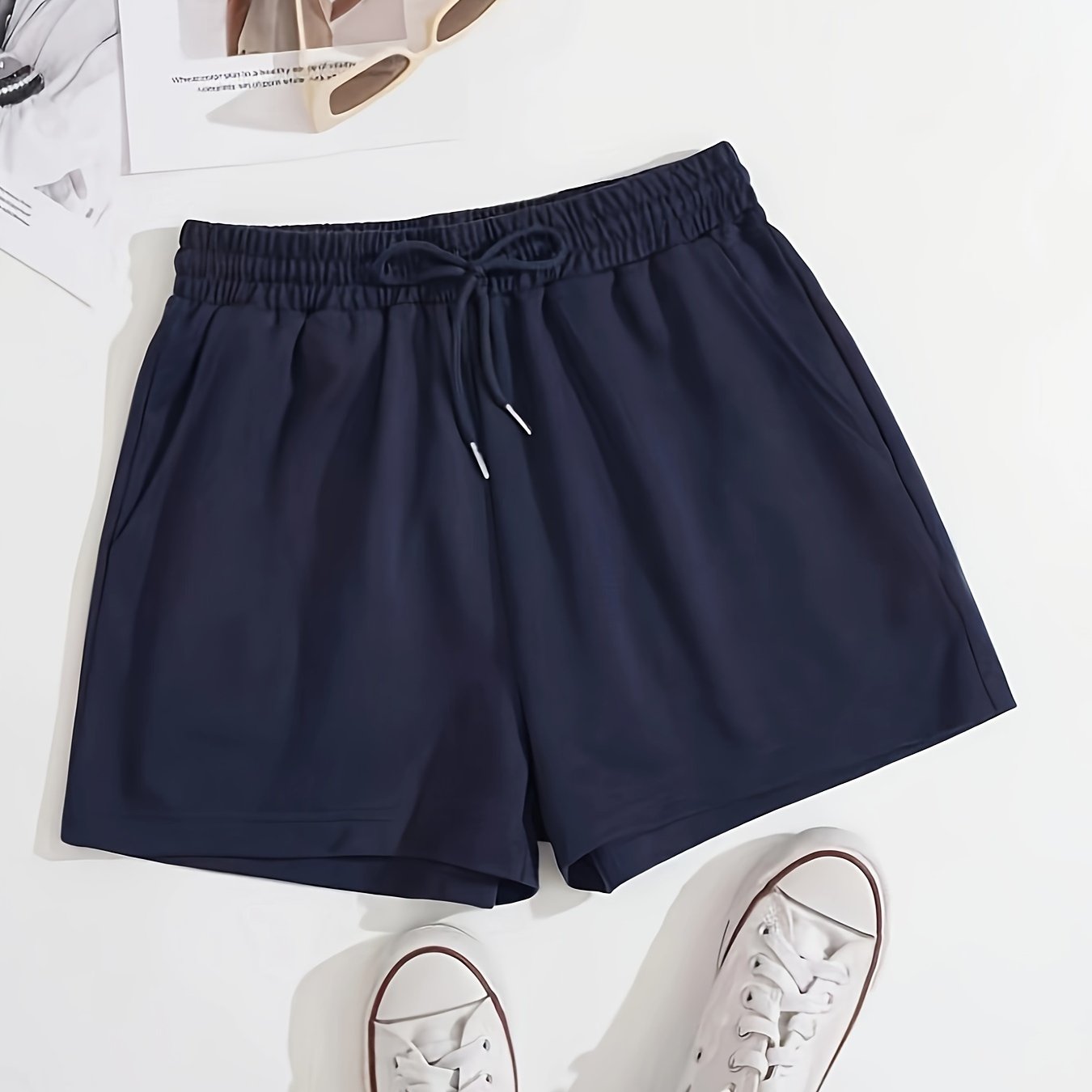 TEMU 여름을 위한 캐주얼한 여성복, 단색 컬러 드로스트링 허리 반바지