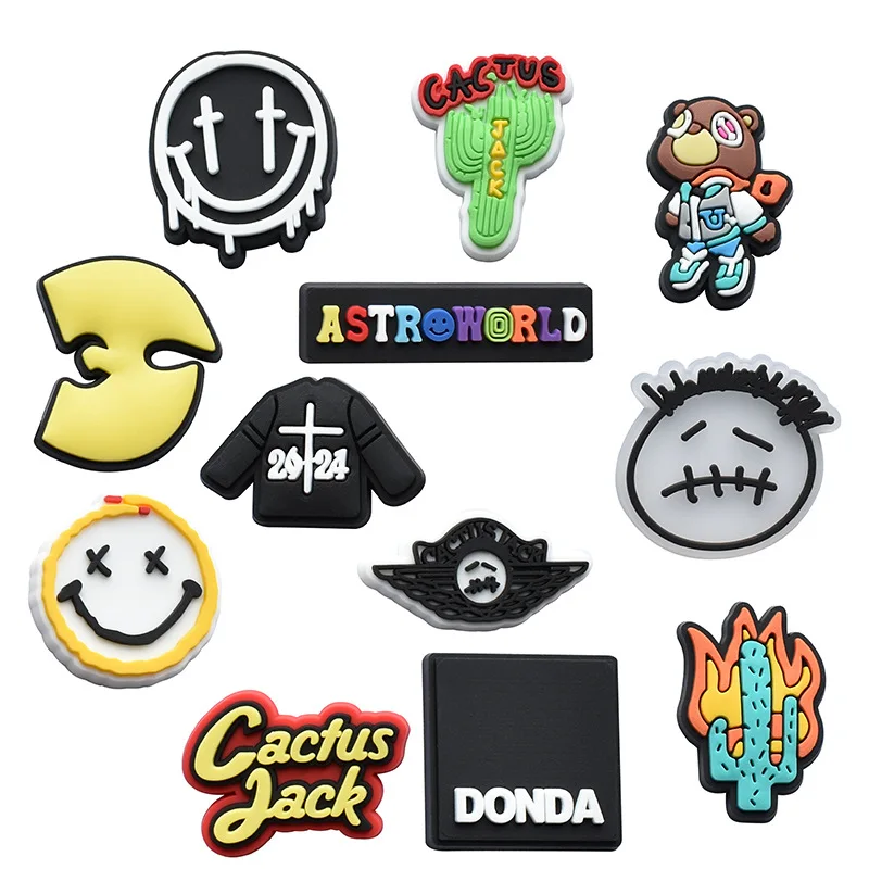 PVC 만화 신발 참, 선인장 신발 액세서리, 장식 버클 핏 클로그 샌들, 손목 밴드 액세서리, DIY, 12 개/세트
