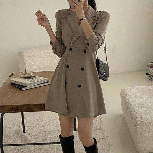 [아리엘스타일]더블버튼 자켓핏 플레어미니원피스 로지트자켓