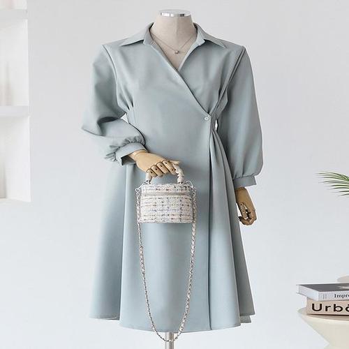 [커스텀에이블] 카라 랩 옆버튼 플레어 원피스_T2508OP621C