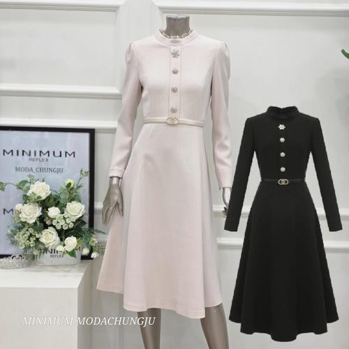 [미니멈]MD 트위드버튼 포인트 카라 플레어 원피스 MD MZDGWO9940DN