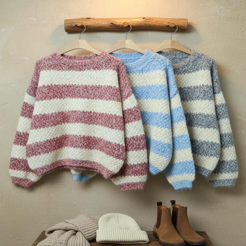 [다잇템]여자 박시핏 FW 보카시 줄무늬 벌룬 니트