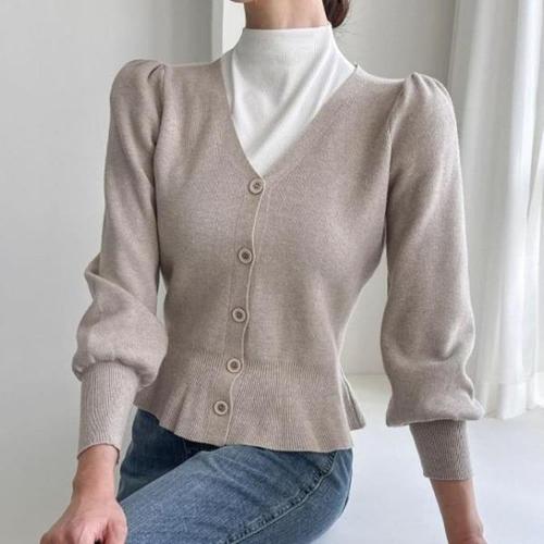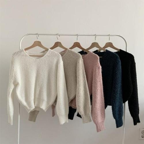 지니우우 J0243A 소매 벌룬 V넥 데일리 니트