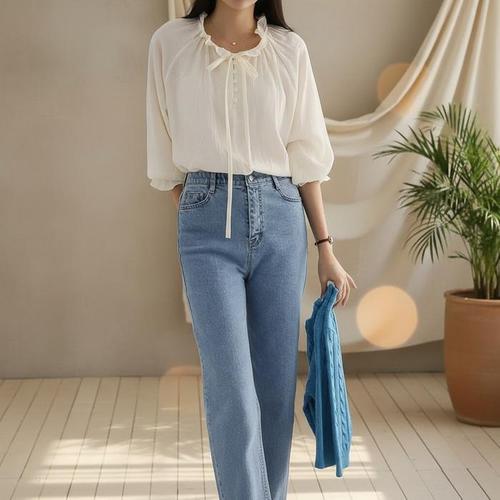 [모리스커밍홈]벌룬핏 뒷리본 블라우스_M2504BL609B