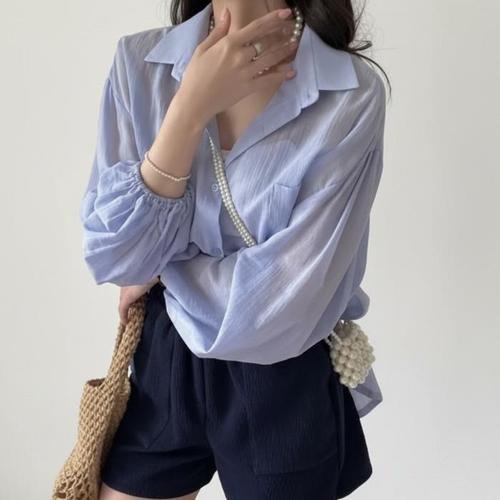 [신상오픈런]여성용 봄 시즌 루즈핏 벌룬 소매 셔츠 블라우스 (46199353)
