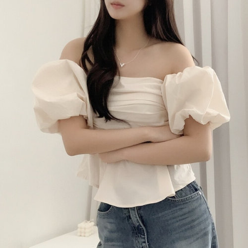 입꼬 / 오드리 벌룬 펌킨 퍼프소매 셔링 블라우스2color