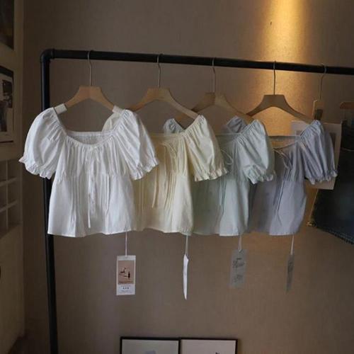 [다잇템]여자 스퀘어넥 잔주름 SS 벌룬 반소매 블라우스 (46255877)