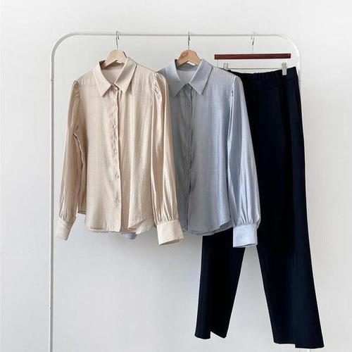 루스리더 여성 심플 퍼프 벌룬소매 셔츠 E880