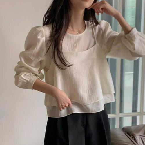 [신상오픈런]여성용 봄 루즈핏 벌룬 소매 셔츠 블라우스 (46199356)